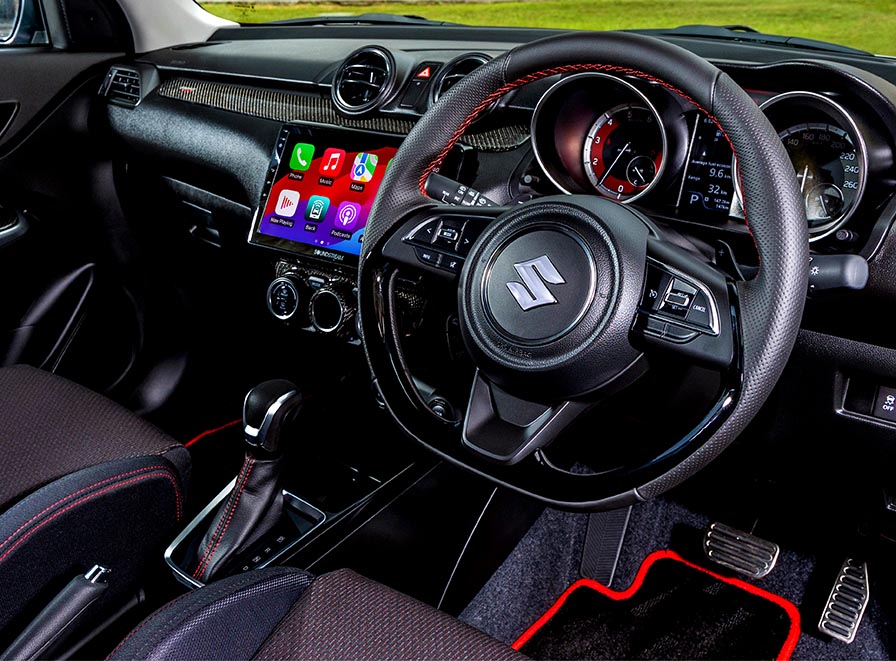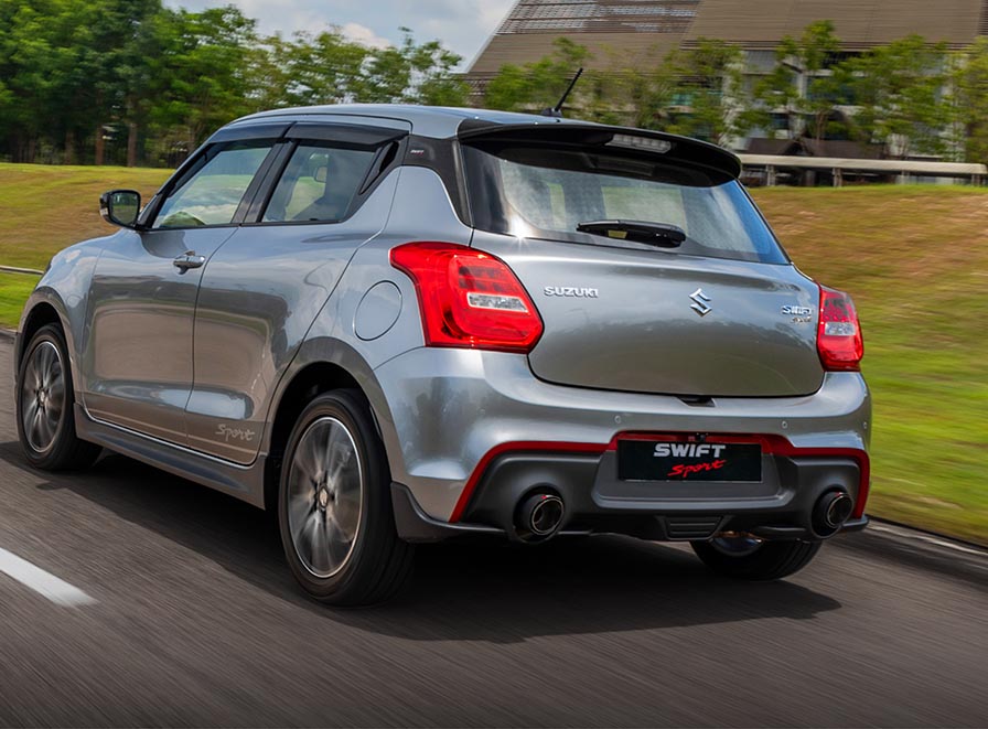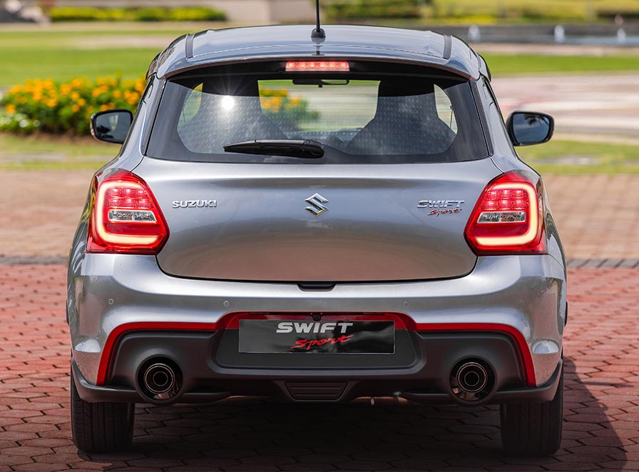 Stay true to your spirit, no matter what. A striking new front grille and bumper assert the Swift Sport’s stinging, distinctive style. Dual exhaust pipes convey potent engine performance. Sharp, passionate design stirs the senses of drivers to go beyond conventional boundaries.